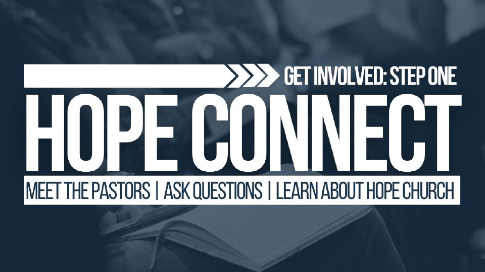 If you're new (or newer) to Hope Church, join us in the meeting room (Room 100) after the service for refreshments, conversation, and a chance to connect with others. Our pastors will tell you some of our church story and will also answer any questions you have.