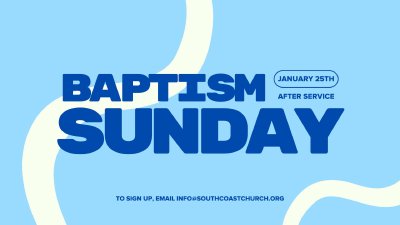 Baptism is a powerful step of faith and a public declaration of new life in Christ. If you feel God stirring you to take this step during this season, we would love to celebrate with you and walk alongside you as your church family! To sign up, please email us at mailto:info@southcoastchurch.org.