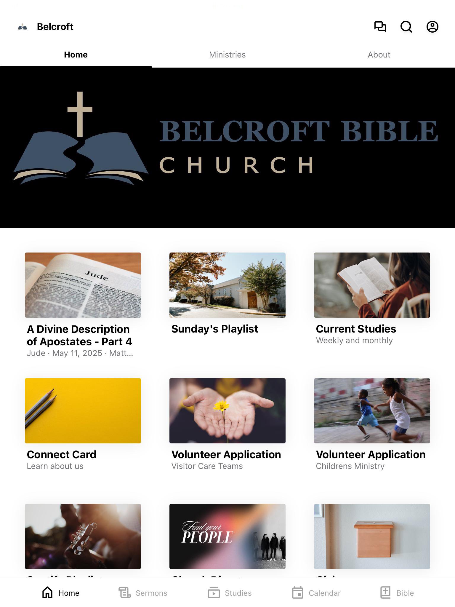 Welcome to the official Belcroft Bible Church app. Belcroft Bible church is located in Bowie, MD, within the Baltimore / Washington DC metropolitan area. Our mission is to glorify God by the faithful preaching and teaching of God's Word. Listen to and watch sermons, bible studies and other BBC ministry content. Stay up to date with current news and ministry / church calendars. At Belcroft Bible Church, we strive to be a local gathering of Christ followers who are growing, ministering, and living with a high view of God, a sufficient view of Scripture, and a humble view of man. You can find more info about Belcroft Bible Church at www.belcroft.org.