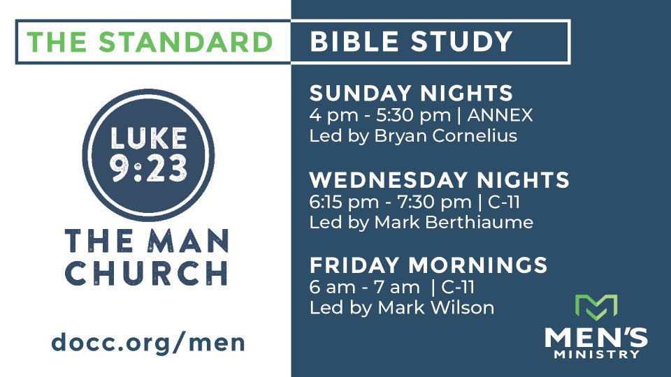 We have three different opportunities for Men to participate in a Bible Study utilizing The Man Church, The Pursuit curriculum. The Pursuit challenges men to model their lives and their manhood after Jesus by spending five weeks each on 8 characteristics modeled by Christ.