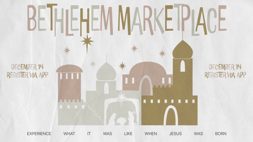 Families will wander through the bustling Bethlehem marketplace and discover through fun experiences and activities what life was like when Jesus was born.