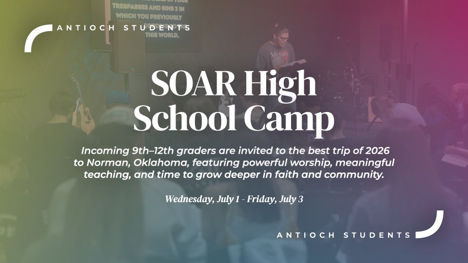 Incoming 9th through graduated 12th graders are invited to the best trip of the summer from Wednesday, July 1, to Friday, July 3, in Norman, Oklahoma. Featuring powerful worship, meaningful teaching, and time to grow deeper in faith and community.