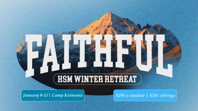 Our HSM Winter Retreat will be January 9-11, at Camp Koinonia again. Our theme is FAITHFUL - with a focus on God’s faithfulness to His people/church. Registration is open!