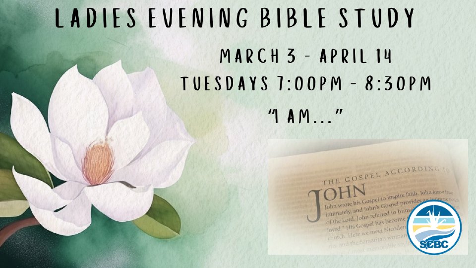 Please Join the Ladies Evening Bible Study this spring. The study will held on Tuesdays, from 7:00pm-8:30pm, beginning March 3 and concluding on April 14.