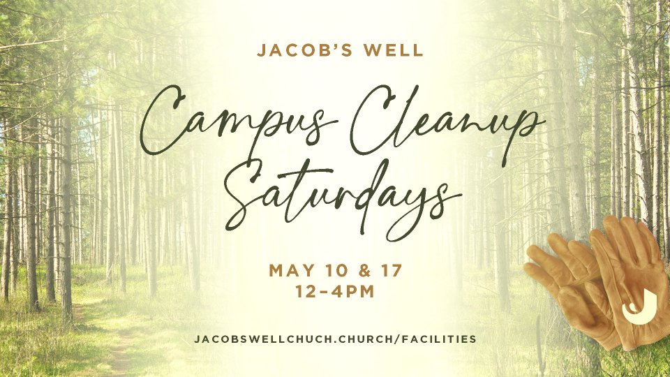 Join us for Saturday afternoons of outdoor cleanup as we work together to keep the Jacob’s Well campus looking its best. We’ll tackle general grounds projects like picking up trash, clearing brush, and sprucing up outdoor areas—no experience needed, just a willingness to help and enjoy some fresh air. Meet in back by the garages, and come as you are! We'll see you there!