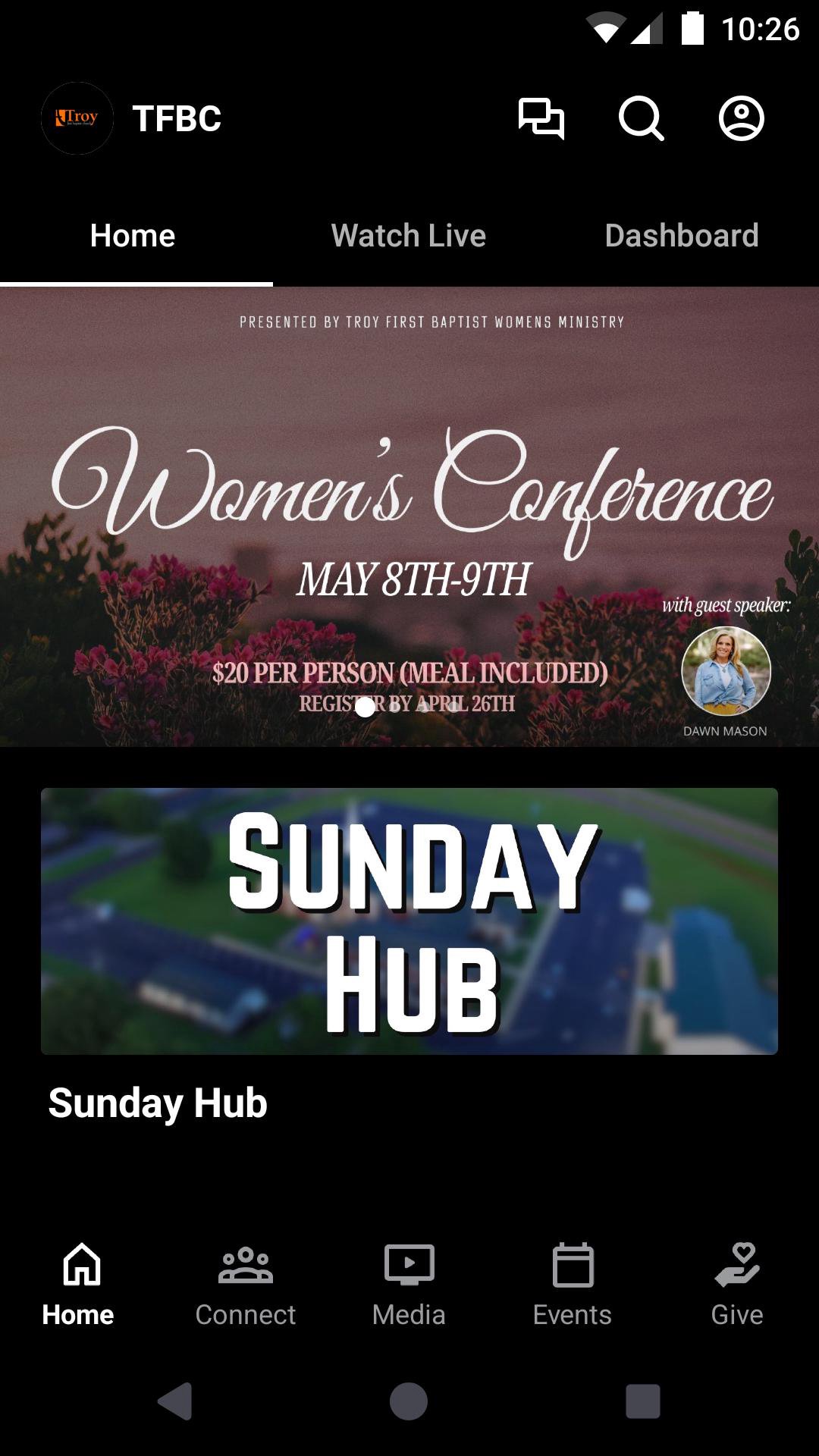 The official app for Troy First Baptist Church provides easy access to giving, events, messages, and more about TFBC