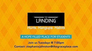 "The Landing" is a safe place for teens to come and share what's on their minds without judgement. This program is for Middle and High School students. Even teens have hurts, hang-ups and habits. Join us on Tuesdays, 6:30-8:30pm. Large group starts at 6:30pm, break out groups, by age and gender, begin at 7:30pm.