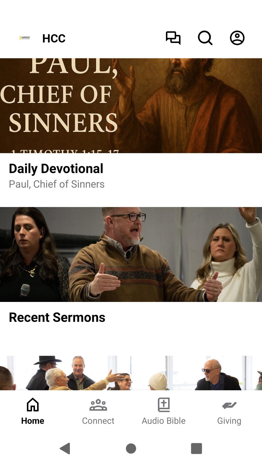 The Harvest Christian Center app gives you easy access to content and information from the staff and HCC team including live services, daily devotions, view upcoming events, online giving and much more.