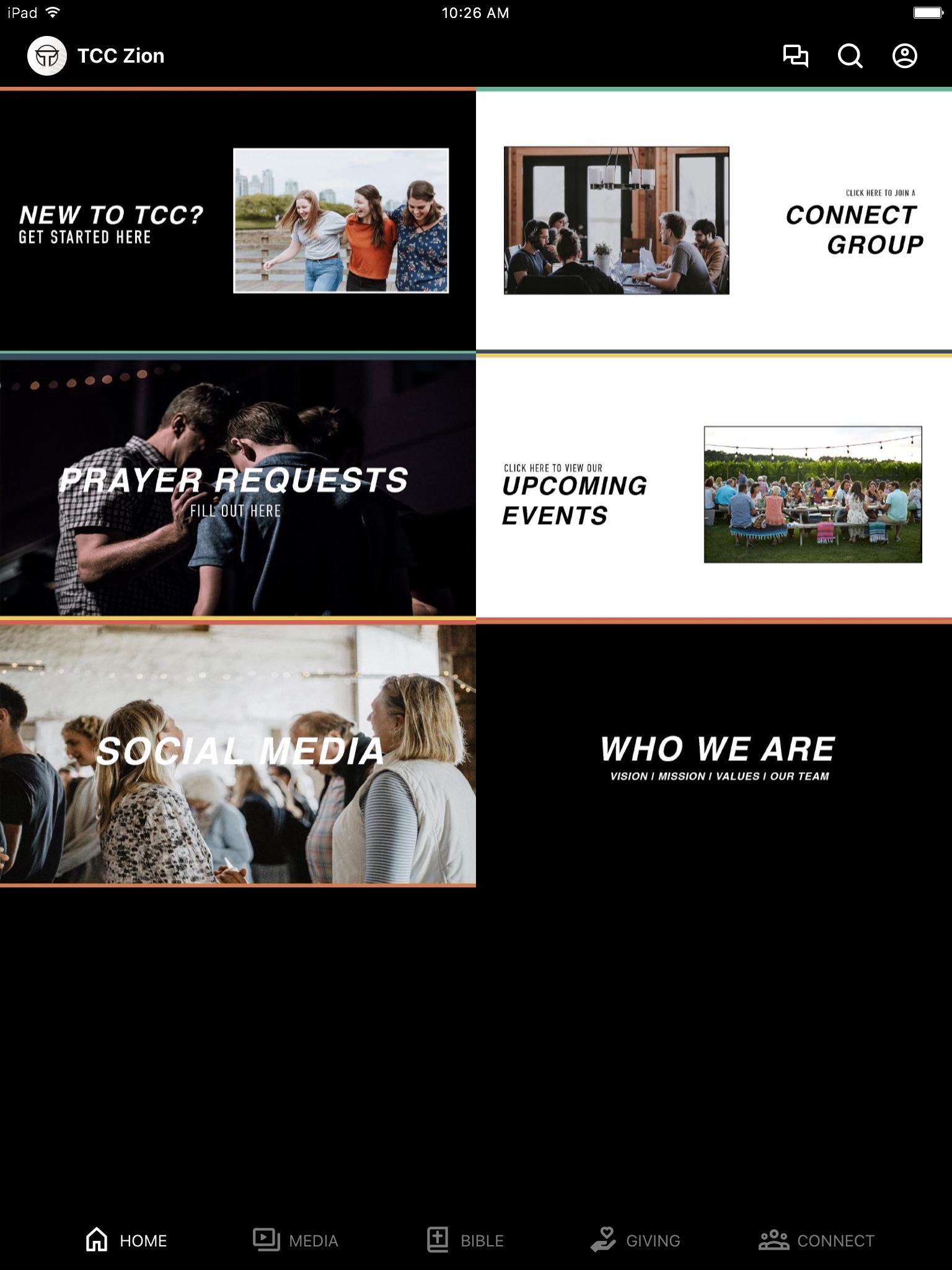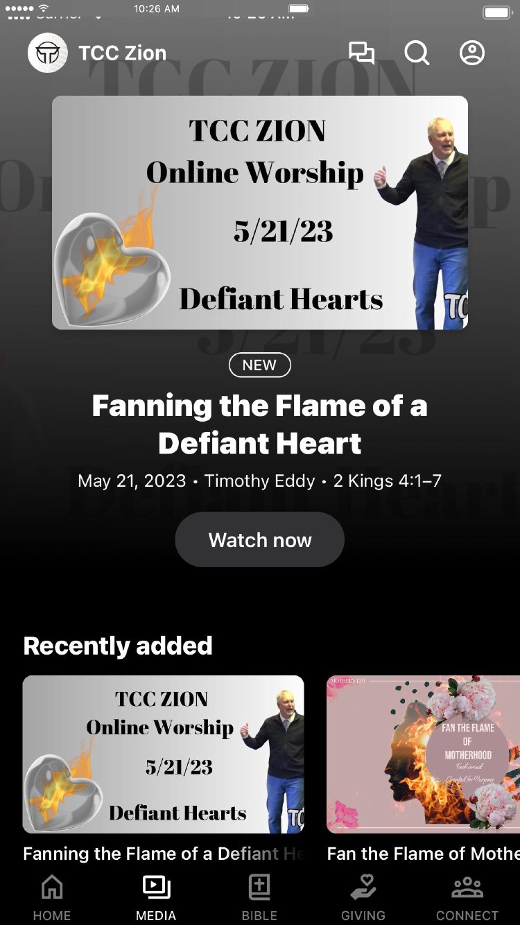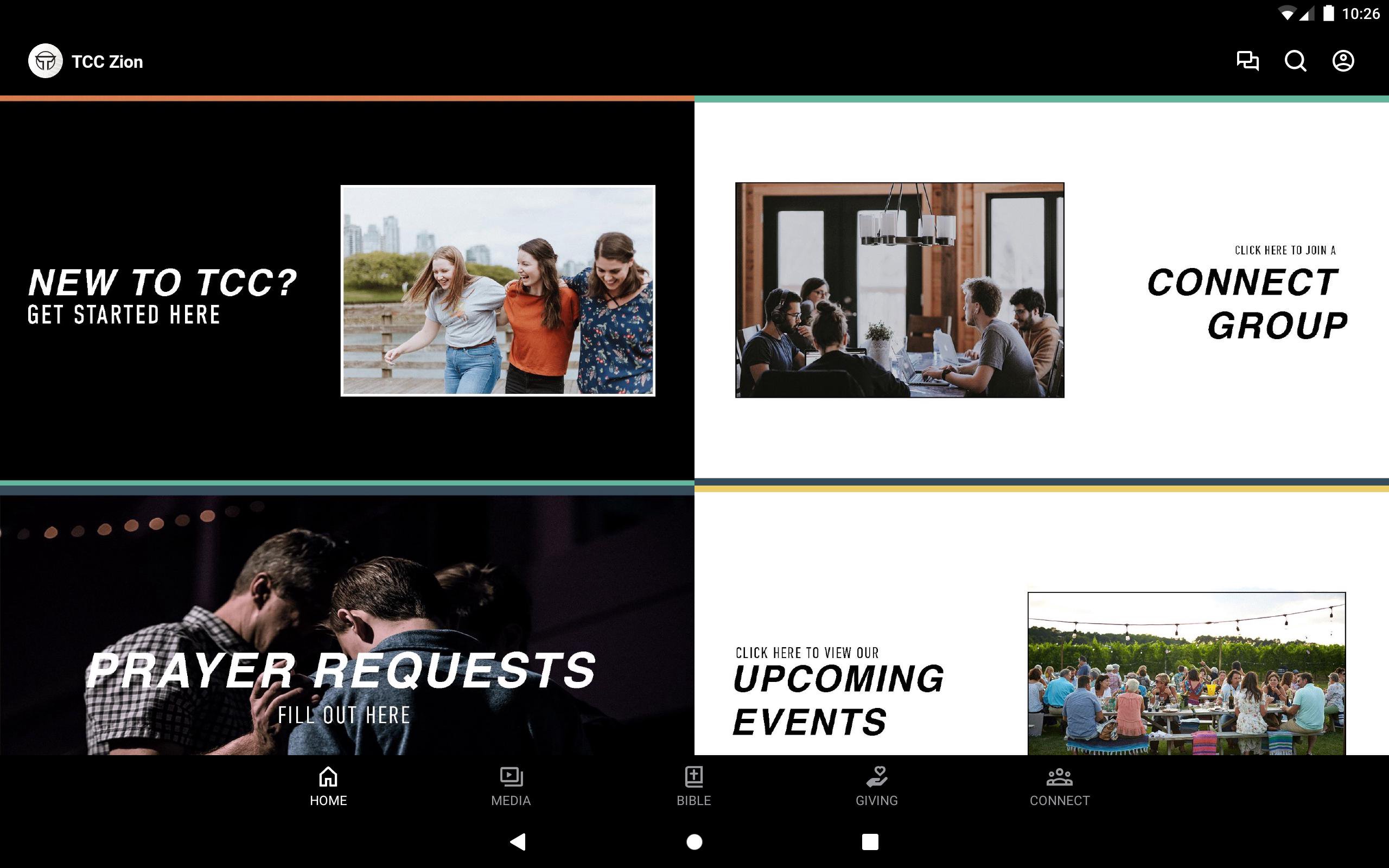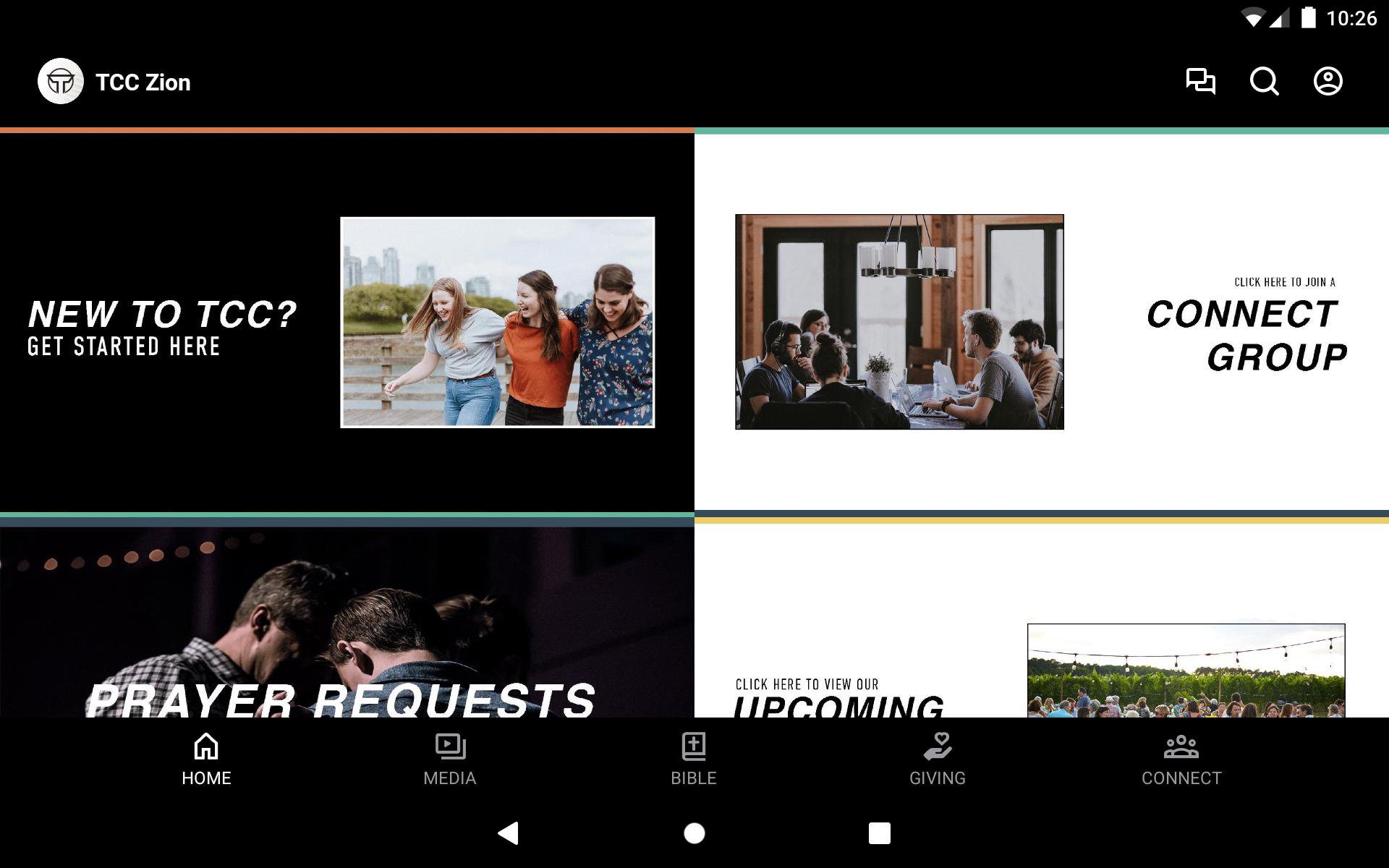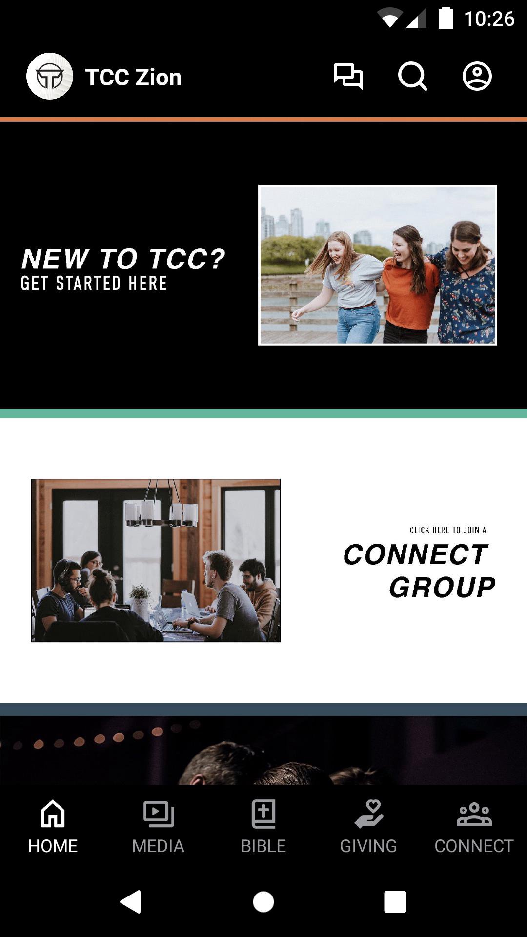 This app will help you stay connected with the day-to-day life of TCC Zion. With this app you can: watch or listen to past messages; stay up to date with push notifications; share your favorite messages via Facebook, or email; and download messages for offline listening.