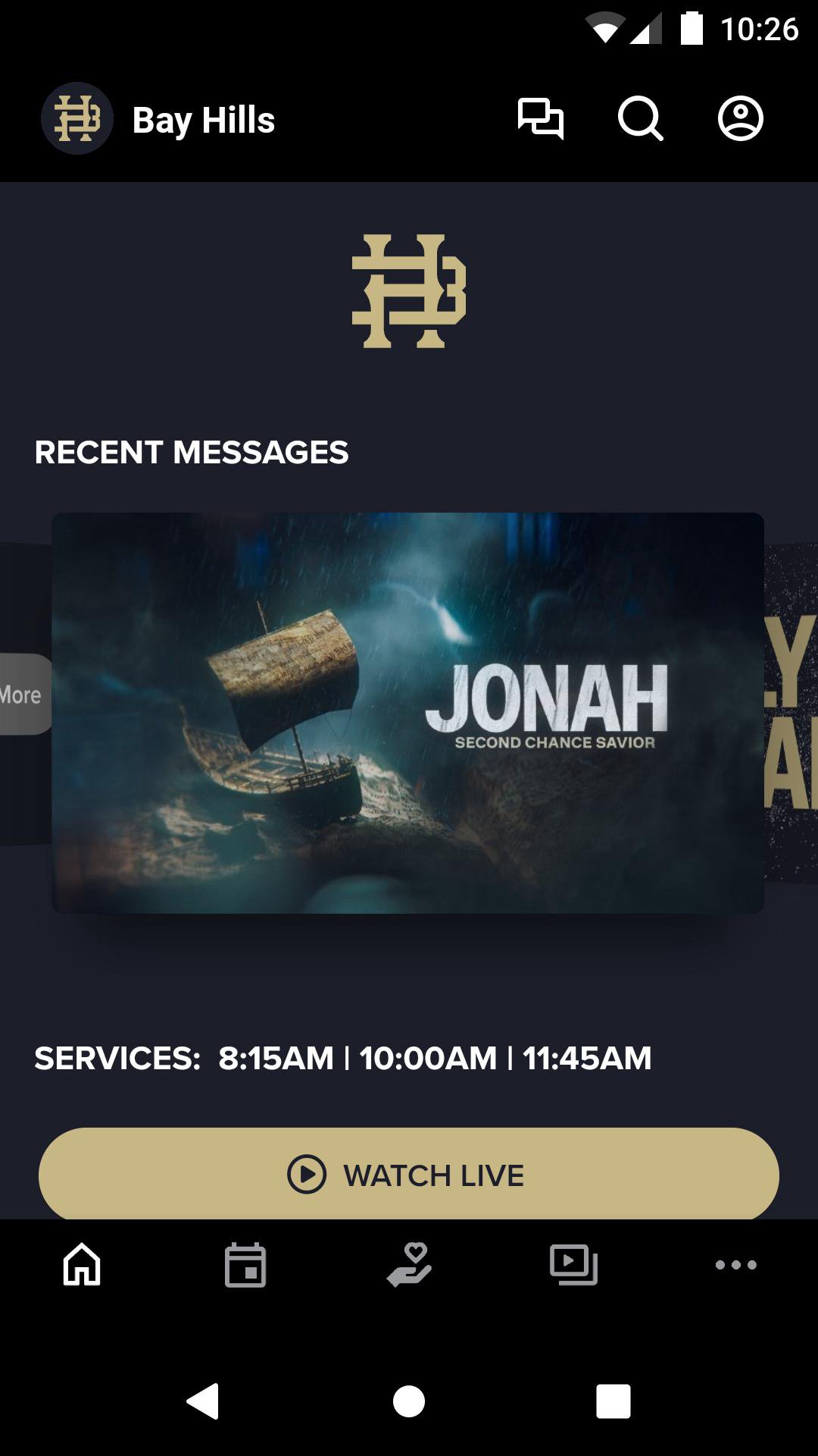 We're here to lead people to Life through a relationship with the Life-giver. On the Bay Hills app, you can: ● Watch or listen to messages on-demand ● Livestream our services every Sunday ● Stay up to date with events and info ● Download resources ● Schedule and manage giving