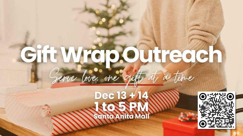 We will be gathering to serve our local community at the Santa Anita Mall. We will be offering prayer and providing free gift wrap for patrons that are shopping at the Santa Anita Mall from 1-5pm both Saturday 13th and Sunday 14th.