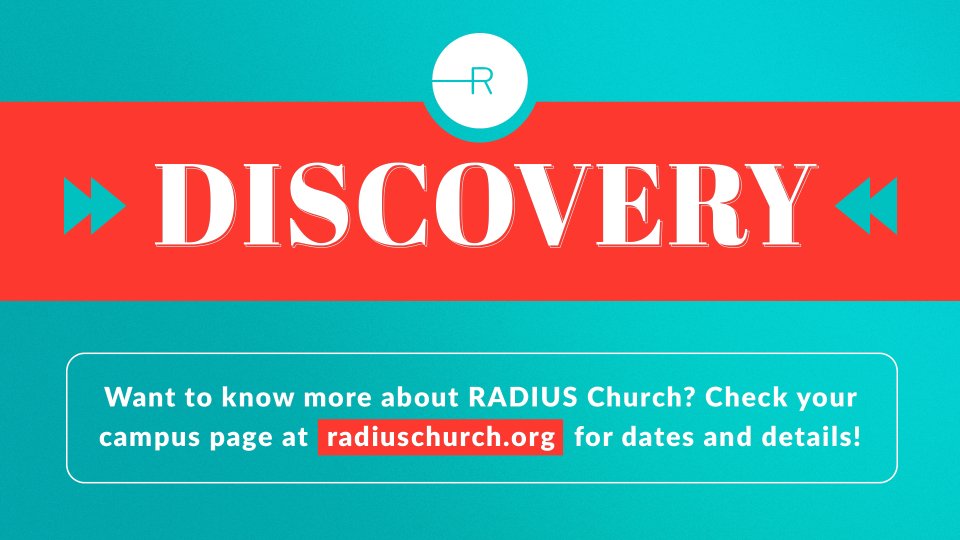 To get more info on Discovery, let us know on a Connect Card, stop by the Connect Desk after service, or visit us anytime at radiuschurch.org.