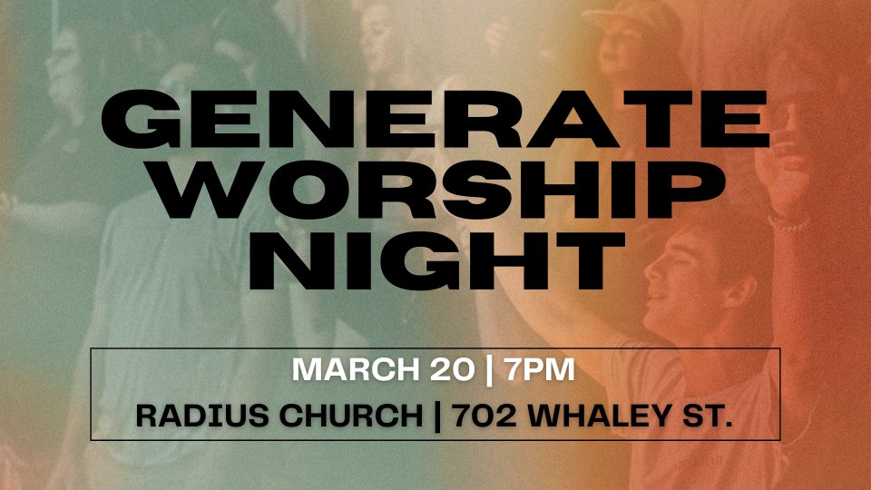 RADIUS Church is hosting the Generate Worship Night on March 20 at 7PM at our location at 702 Whaley St. See you there!
