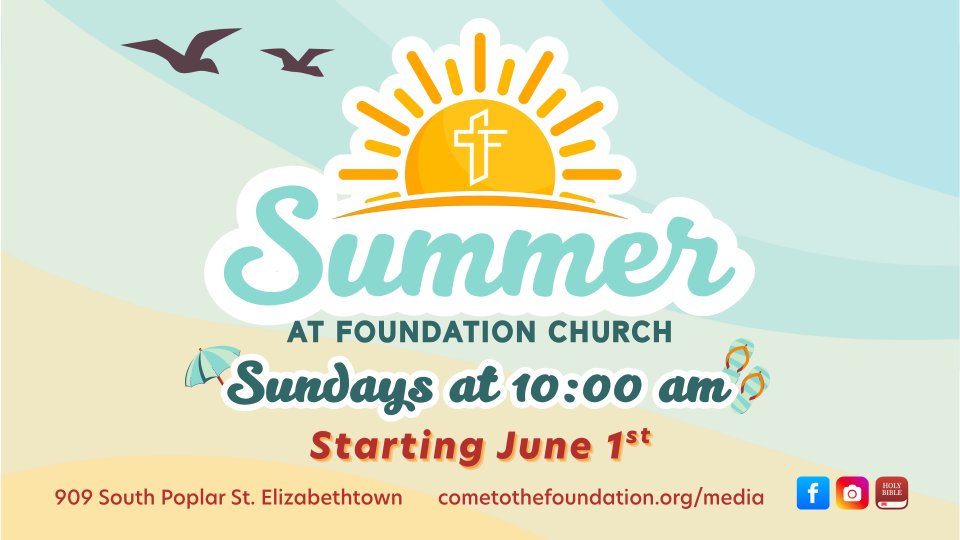Join us at Foundation Church this Summer for 1 Service on Sundays beginning in June.