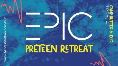 Join us for an EPIC retreat at Camp Butter and Egg in Troy, AL. We will leave Dothan at 4pm on March 20th and arrive back around 4pm on March 21. Please be sure to pack the following items: 2 changes of comfortable clothes, tennis shoes, a light-weight jacket or sweater, twin size bedding OR sleeping bag, pillow and pillowcase, a blanket, sunscreen, bug spray, personal toiletries, and any medicines you may need. Please place all medicines in a Ziploc bag along with instructions. Cost is $85 per person. Deadline to sign up is Friday, March 13.