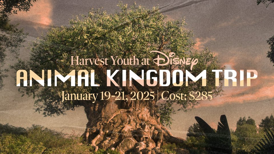 We are taking a trip to Disney's Animal Kingdom! Cost: $285. Registration and $100 deposit is due by Sunday, December 8. You can sign up online at the Hub under Youth Events. Final payment is due by Sunday, January 12. We will attend the first service together on January 19, leave for Orlando at 10:45am, and return back around 3pm on January 21. Parents, feel free to email us if you have any questions.