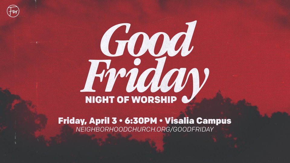 On Friday, April 3, we’ll gather at our Visalia campus to slow down to remember the depth of God’s love revealed in Jesus, who entered human suffering, carried our brokenness, and gave Himself for the life of the world.