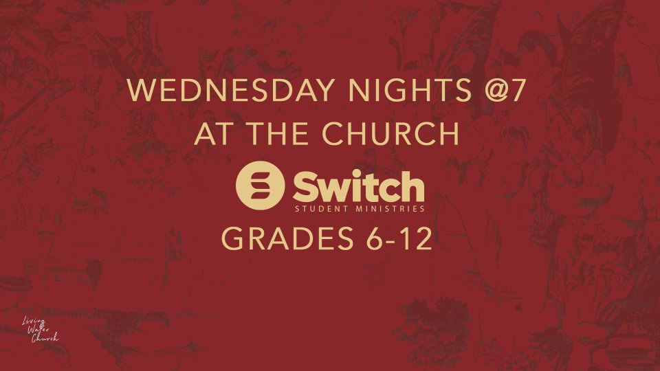 Together. Not Alone. Switch is our weekly Student Ministry for students 6-12th grade. We meet at the Church on Wednesday's at 7:00PM with AJ & Nicole Parenti Switch is loaded with worship, friends and a message geared towards students and their everyday life. Our goal is to create an experience where students can meet Christ and grow in their relationship with Him.