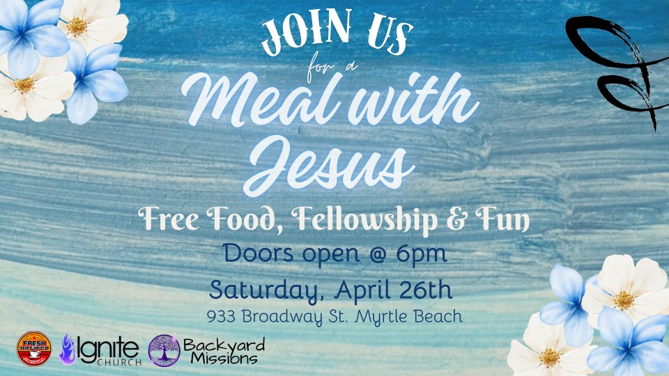 Backyard Missions will be hosting a Meal with Jesus at Fresh Brewed Coffee House Saturday, April 26th from 6-8pm. They are collecting $10+ fast food and local business gift cards to bless those in need.