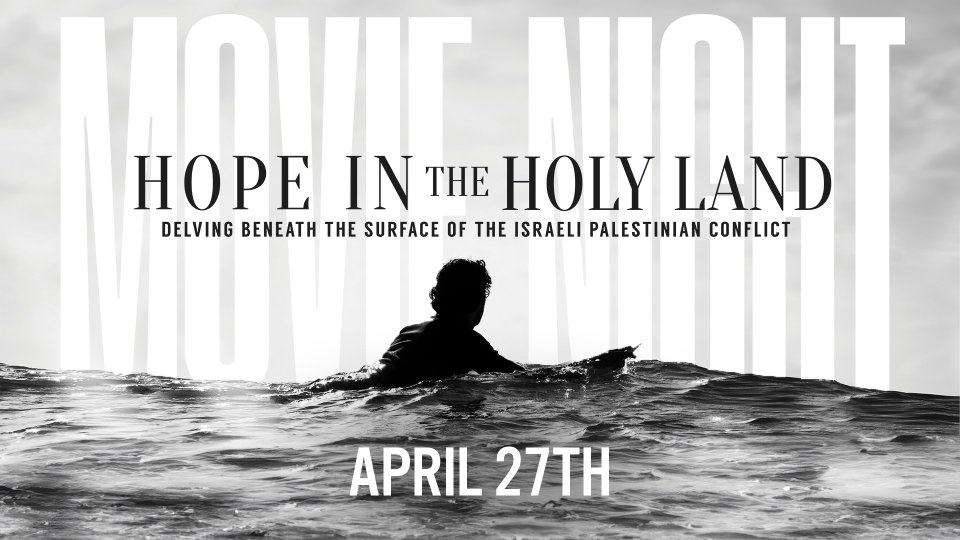 Join us for a Movie Night showing "Hope in the Holy Land," a movie that delves beneath the surface of the Israeli Palestinian conflict, and helps better understand it.