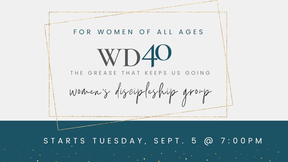 Women of all ages, join us for WD40 on the 1st Monday of every month. Led by Liz Teel.