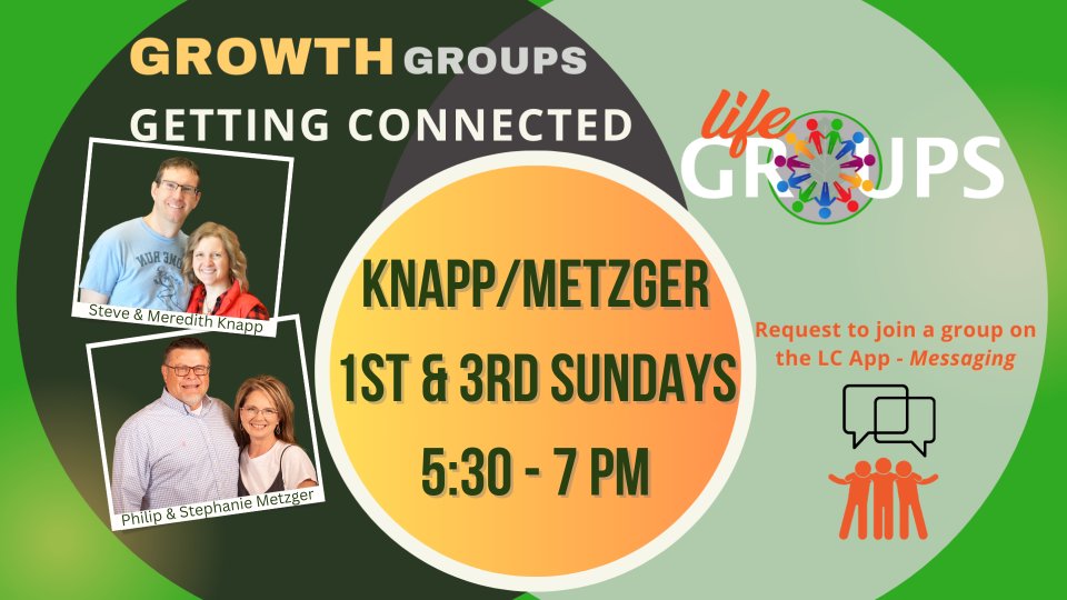 The Knapp/Metzger Group meets on 1st & 3rd Sundays from 5:30-7pm.