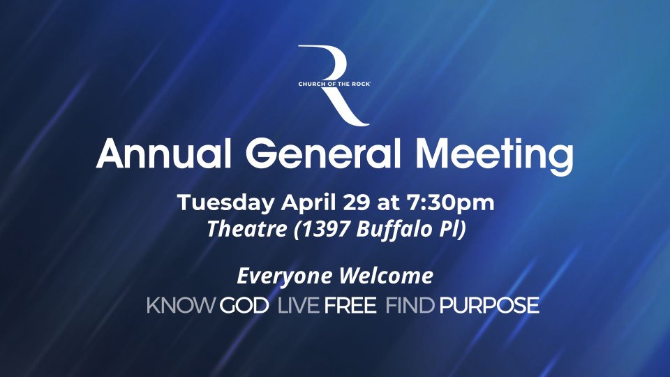 (Note: Those who wish to become Voting Members of Church of the Rock must first attend one AGM as a guest and then fill out a Voting Member Application package, which will be available to pick up at the meeting.)