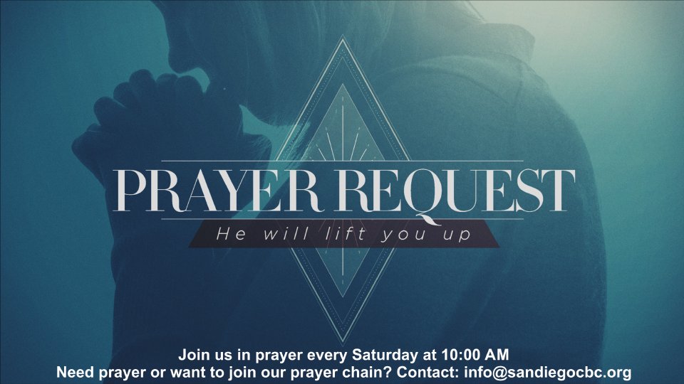 WEEKLY IN-PERSON PRAYER MEETING Join us for our church-wide, in person, prayer time on Saturday at 10:00 a.m. at the church. For more information, please contact the office.