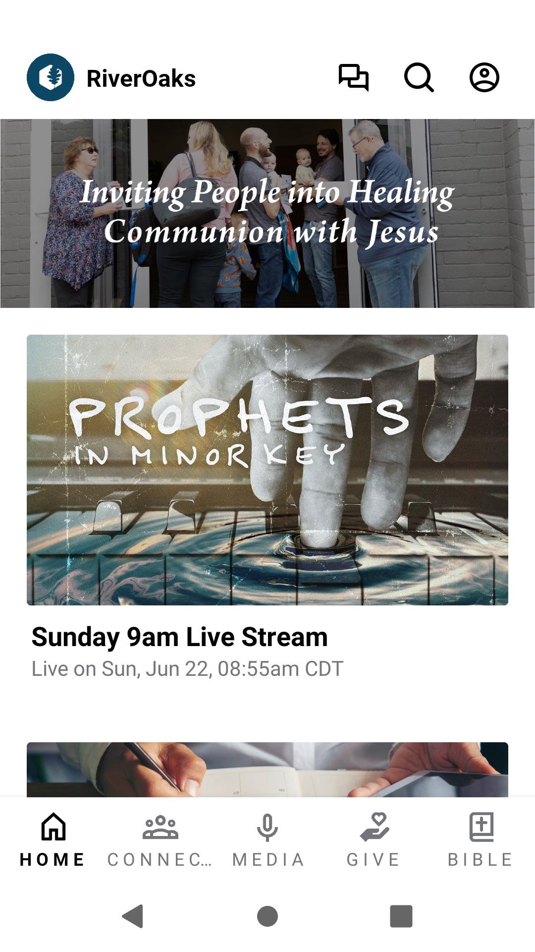 This app will help you stay connected with the day-to-day life of RiverOaks Presbyterian Church. With this app you can: Give to the church, watch or listen to past messages; stay up to date with push notifications; share your favorite messages via Social Media, or email; and download messages for offline listening.
