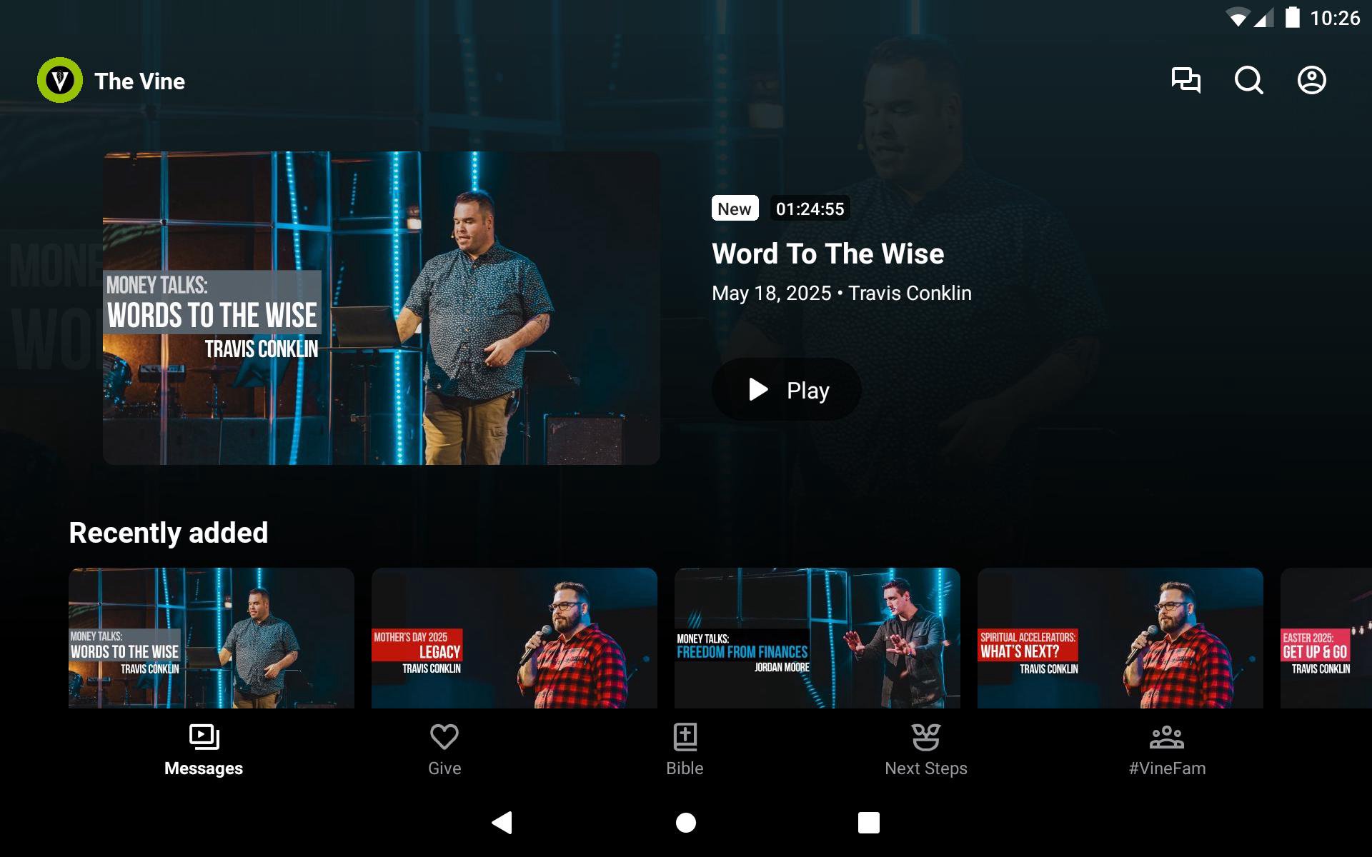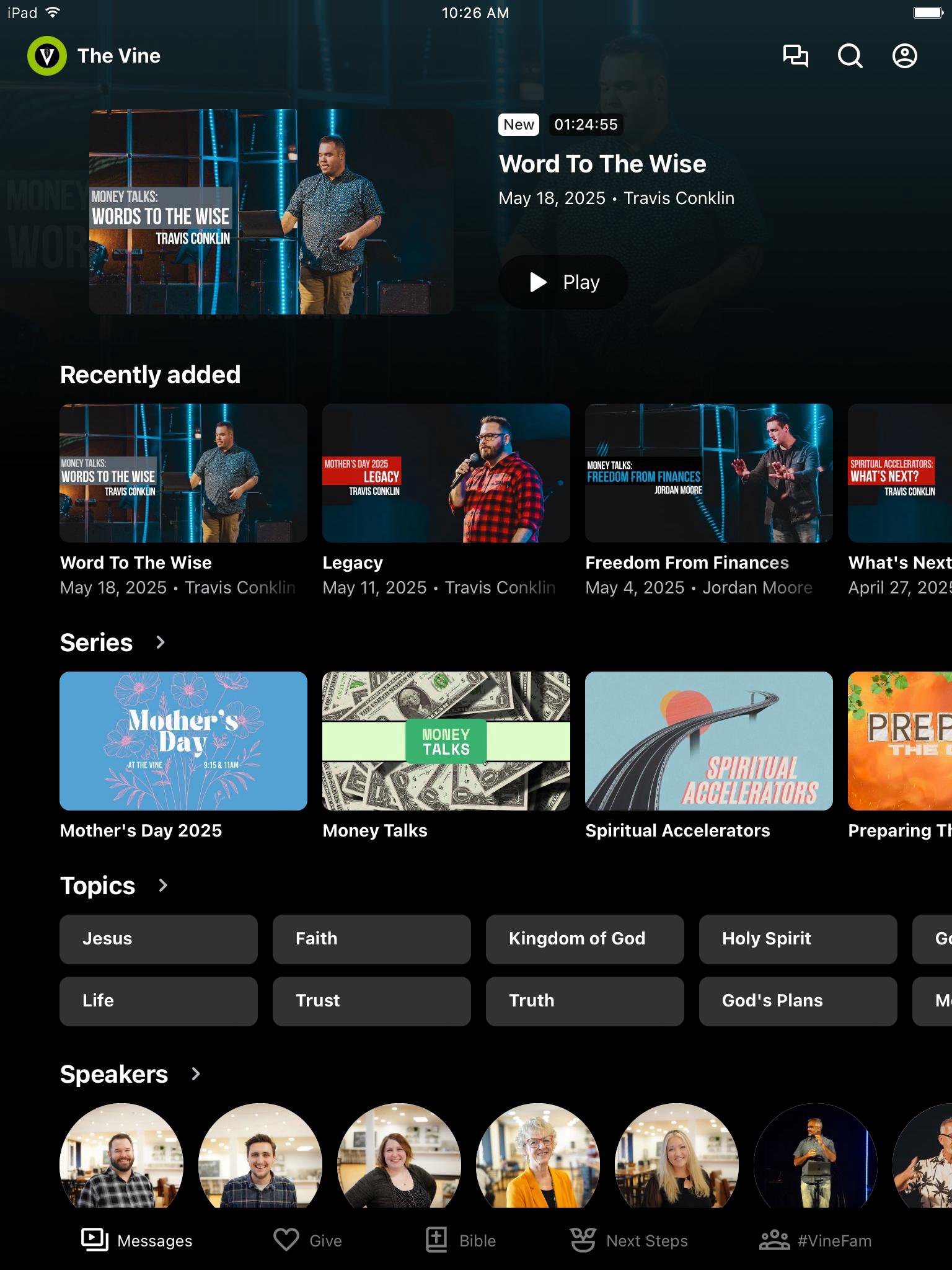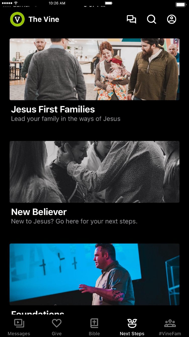This app will help you stay connected with the day-to-day life and community of The Vine Church (also known as the #VineFam). The Vine Church is a Vineyard church located in Goshen, Indiana. This app will help you connect and grow with easy access to relevant ministries, upcoming events, and the ability to engage with live streamed messages (every Sunday at 11am ET). The Vine Church is a Vineyard church located at 2616 Peddlers Village Rd. Suite 2 in Goshen, Indiana. The Vine has services on Sundays at 9:15 AM and 11AM EST with a mission to love, serve, and reach our community and the city of Goshen. We are members of the Association of Vineyard Churches. https://vineyardusa.org/ Visit https://www.thevinegoshen.org to learn more about us. In the Summer of 2014, The Vine began with monthly gatherings at our pastor Travis and Jennica’s home, to cast vision and invite friends to join in planting a new Vineyard church in Goshen, Indiana. Six months and many living-room-worship-services later in January 2015, The Vine began meeting for Sunday morning services in Goshen. We were continually amazed at the growth God brought us as we had to move into larger facilities three times in our first two years as a church family. By God’s grace, we purchased our current facility in the Summer of 2019, and began the year long process of transforming an empty warehouse that had once served as a grocery store and indoor soccer complex into our new church home. From the very beginning, and as our church grows, the Vine remains committed to keeping relationships at the heart of what we do. We believe that it is through relationship with God first, then with others, that we can create a thriving community of healthy Jesus-followers that reach the city of Goshen.