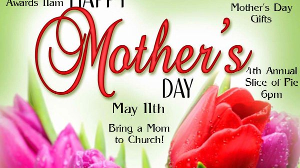 Join us for Mother's Day. Special gifts for all the Ladies in attendance. 9:30-10 and Noon we will be taking Mother's Day Pictures for you and your family. We will be giving away some Mother's Day Awards for 3 of our Mother's who are Members of our Church>>>The oldest Mother...the Mother with the most children and grandchildren in attendance...the Mother with the most family Members in attendance. Sunday Night at 6pm in our North Hall will be our 4th Annual Slice of Pie for all the Ladies, Teen young ladies and girls...Men and boys will be serving. Don't miss this special day.