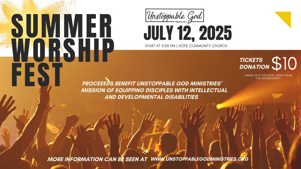 One of our partners, Unstoppable God Ministries, is excited to announce Worship Fest. Unstoppable God Ministries serves individuals with intellectual and developmental disabilities and their families.