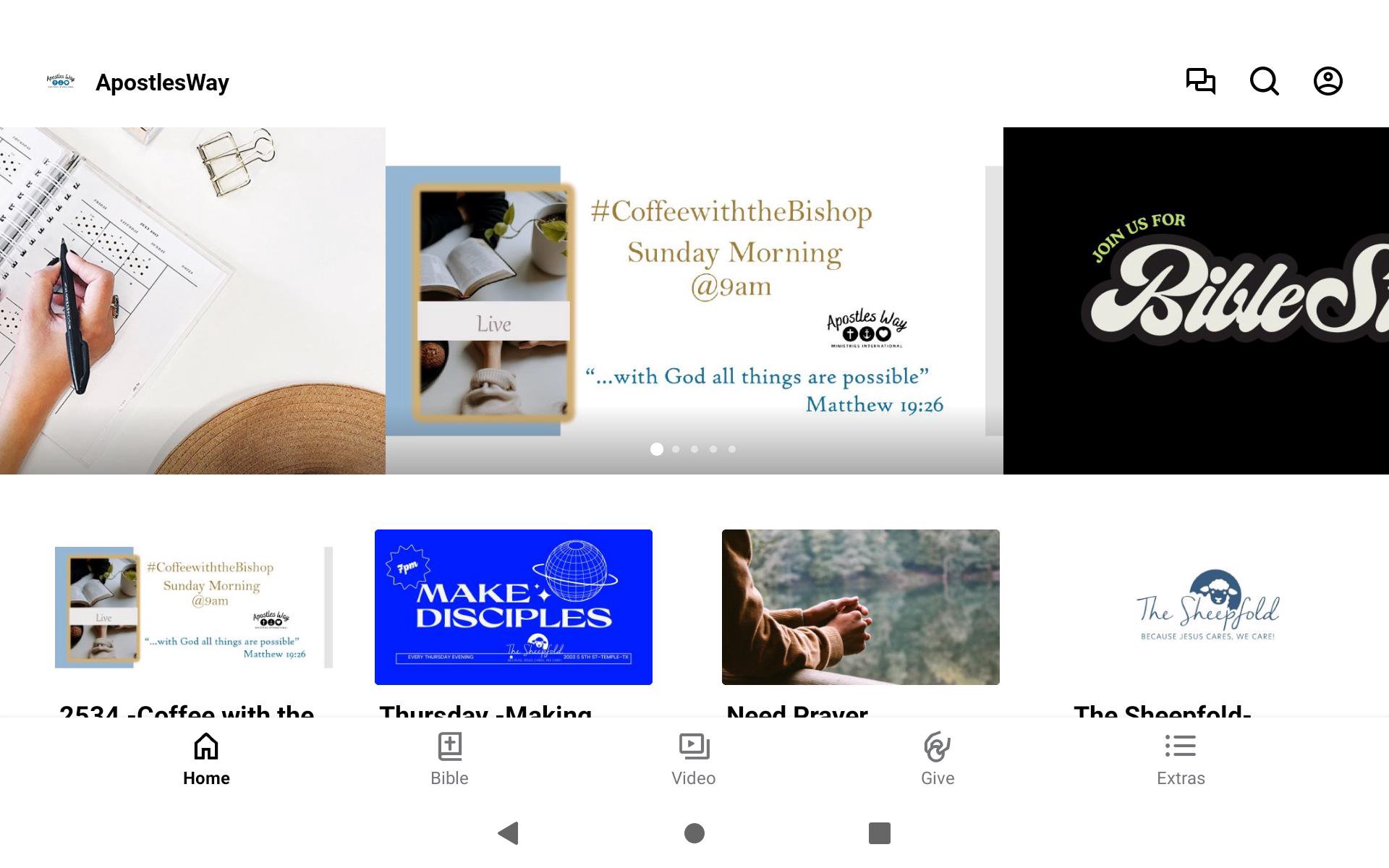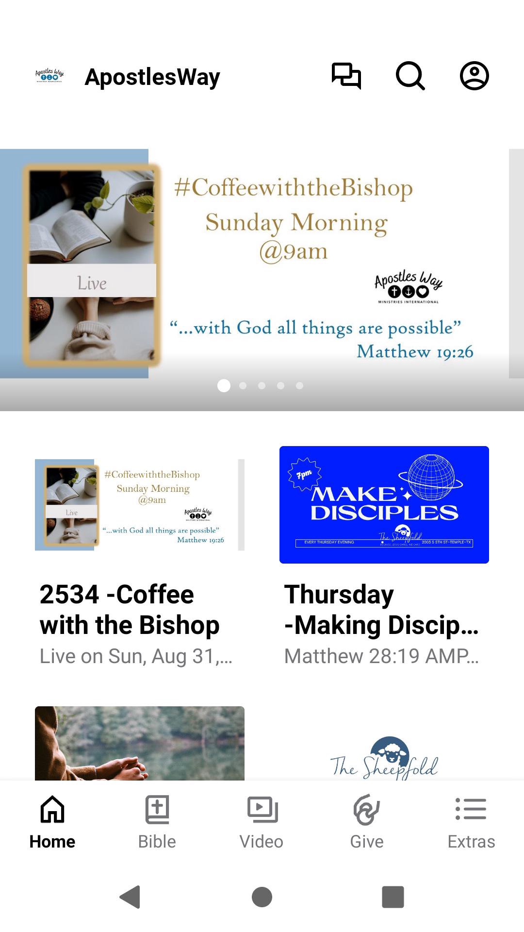 This app will help you stay connected with Apostles Way Ministries. Our app makes it easy for you to watch or listen to past messages; stay up to date with push notifications; share your favorite messages via Twitter, Facebook, or email; and download messages for offline listening.