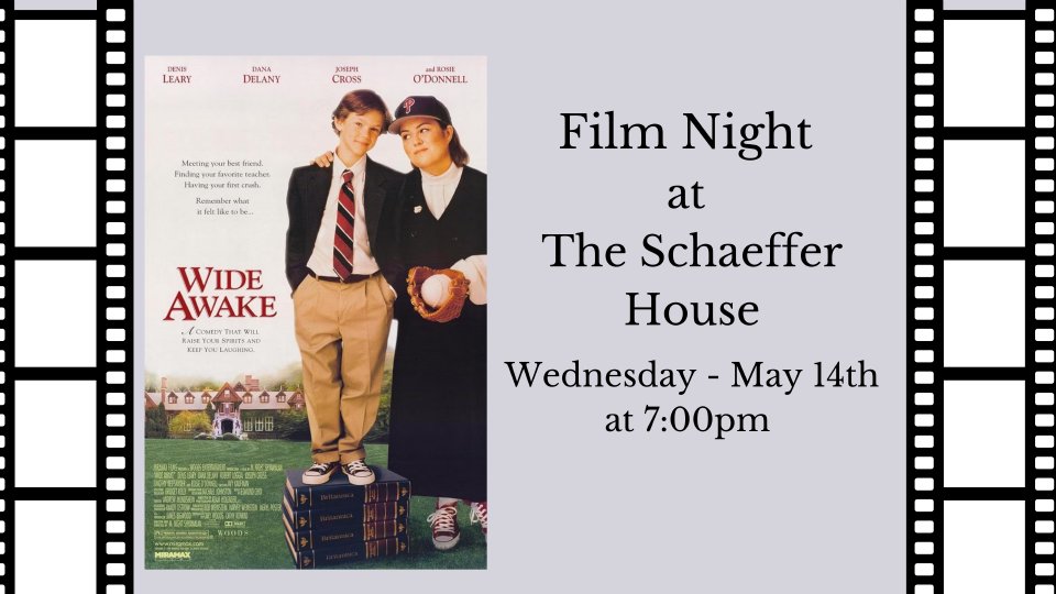 Join us at The Schaeffer House on Wed May 14th for a viewing and discussion of the film Wide Awake. Doors open at 6:15, film starts at 7pm.
