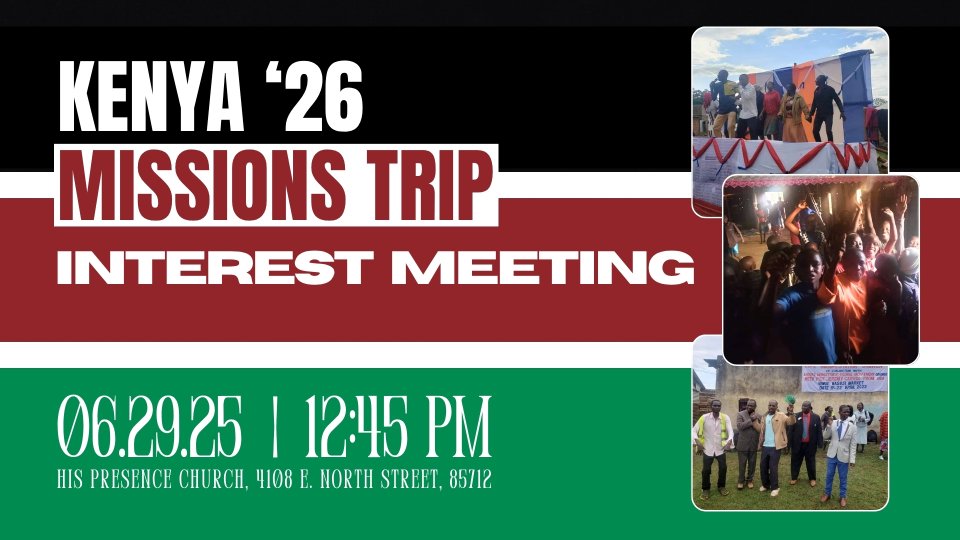 HPC will be sending a Missions team to Kenya in 2026. If you are interested in learning more about the mission trip, please join us on June 29th after the service at 12:45 PM.