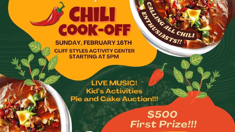 Come join us for our Chili Cook-Off and Pie & Cake Auction!