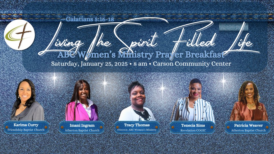 Our AthertonBC Women’s Ministry will host their 22nd Annual Women’s Prayer Breakfast on Saturday, January 25, 2024 at 8 am. This year’s Breakfast will be held offsite at The Carson Community Center in the beautiful City of Carson, CA. The cost is $40/person.