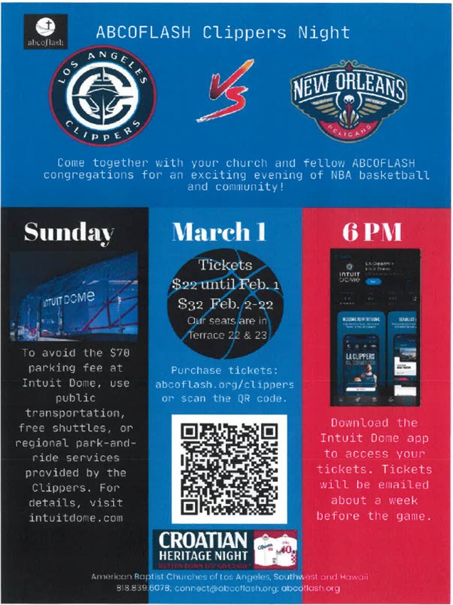 Join us for an exciting family-friendly night of basketball, fellowship, and fun at the LA Clippers game!