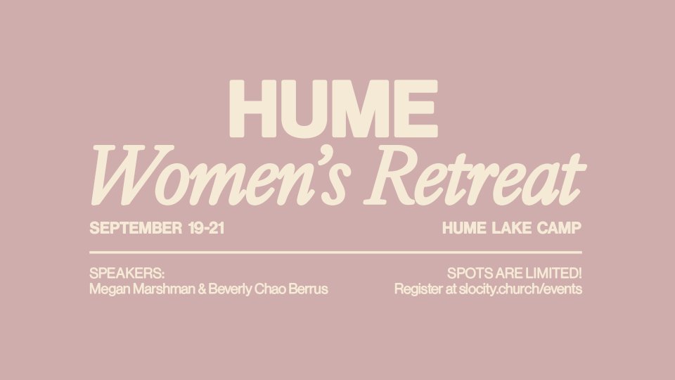 Join SLO City on our first-ever Women's Retreat! This will be a transformative, restful, and renewing weekend at Hume Lake!! This September, Megan Fate Marshman will be the key speaker for the weekend. Megan is known for her passionate teaching, authentic storytelling, and deep love for Jesus. Megan brings biblical truth to life in a way that is relatable, inspiring, and deeply encouraging for women in every stage of life.