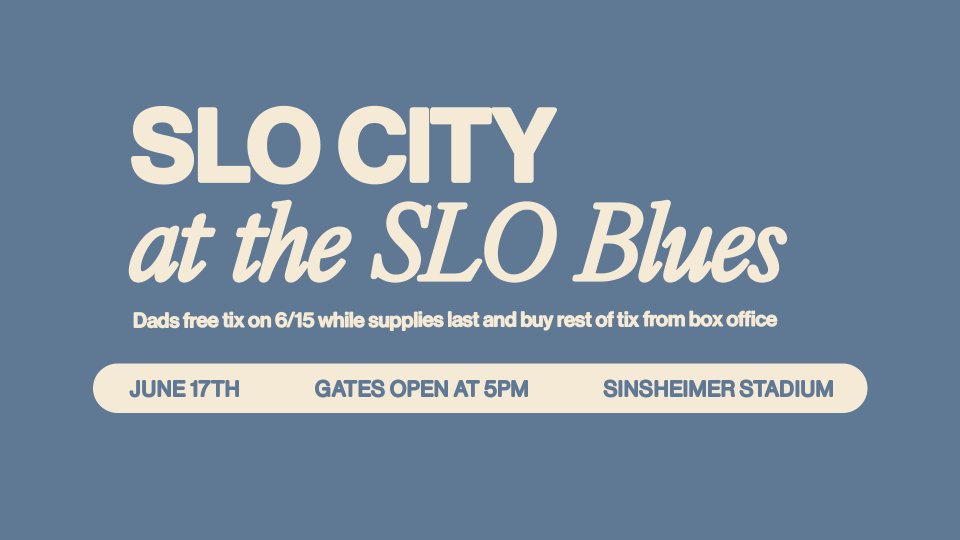 We're taking it out to the ball game on June 17th! Come hang out and enjoy the game with us. Dads will receive free SLO Blues tickets on 6/15 while supplies last. Bring your crew - we can't wait to see you there!