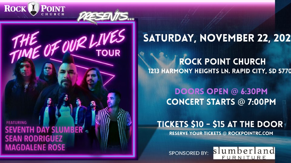 Bring your Family and Friends and enjoy Dove Award Winning rock band, Seventh Day Slumber.