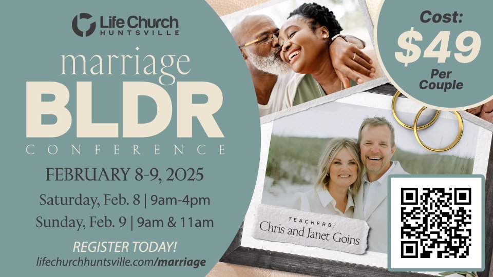 Make plans to join us for our upcoming Marriage Buidlers Conference on February 8-9, 2025. This will be a weekend for you and your spouse to grow closer to God and one another. Our guest speakers for the day will be Chris and Janet Goins. Their anointed and practical ministry style impact hundreds of couples each and every year.