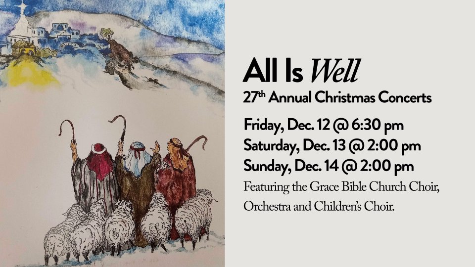 Join us this December for our 27th Annual Christmas Concert! The "All Is Well" concert will feature the Grace Bible Church Choir, an Orchestra, and the Children's Choir.