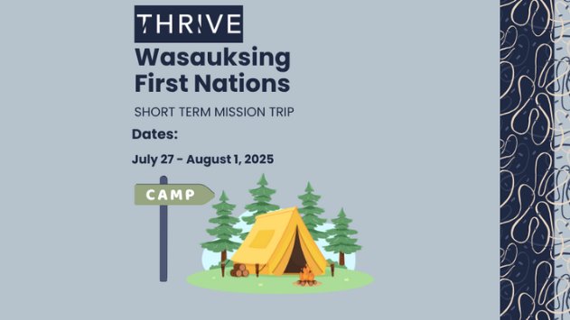 Join us for our short-term mission trip as a THRIVE team to Parry Sound! We're partnering with Wasauksing First Nations community through a VBS program for the kids and teens.