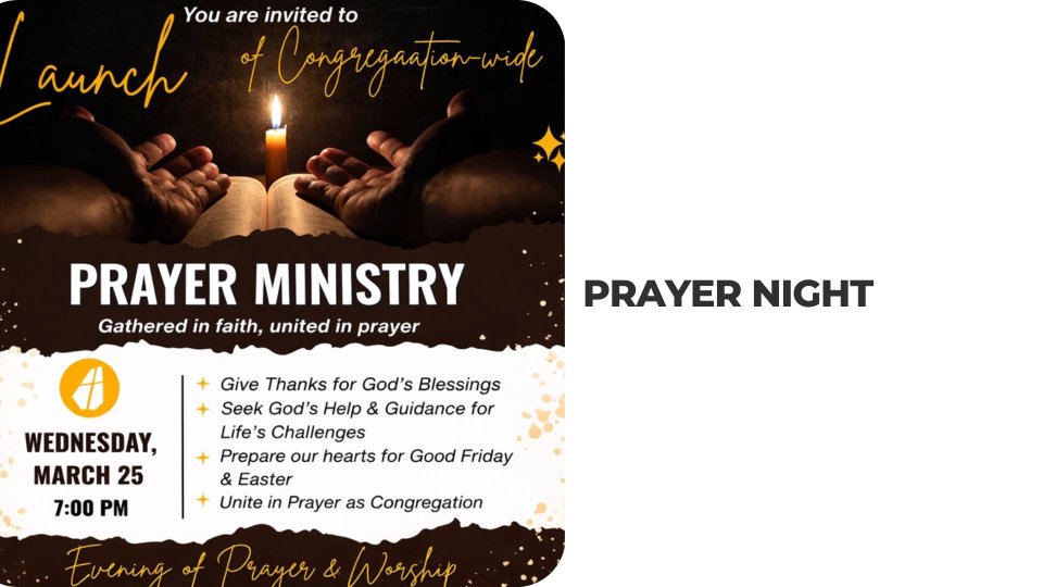 Together, we will give thanks for God’s blessings, seek His help and guidance for life’s challenges, prepare our hearts to reflect the Gospel of Christ, and unite in prayer as a congregation.