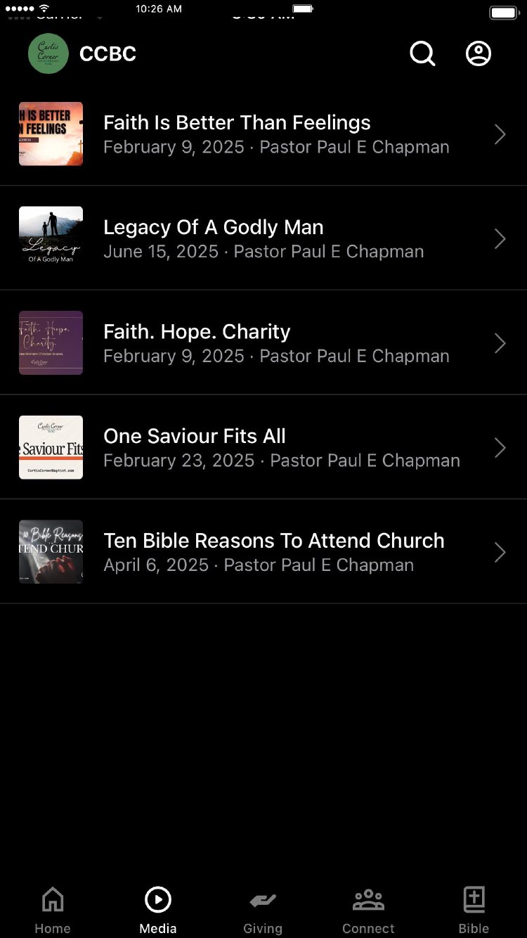 This app will help you stay connected with the day-to-day life of our Curtis Corner Baptist Church. With this app, you can watch or listen to past messages featuring Pastor Paul E Chapman. In addition, you can stay updated with push notifications, read the Bible, and view our calendar.
