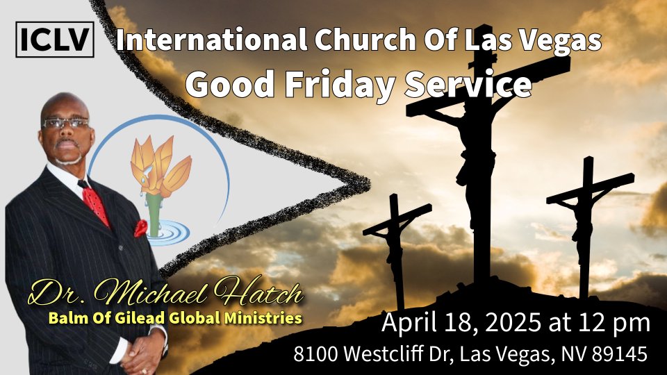 Balm of Gilead Global Ministries invites you to a powerful and anointed Good Friday service as Dr. Michael H. Hatch delivers a life-changing message at the International Church of Las Vegas (ICLV) on Friday, April 18, 2025, at noon.