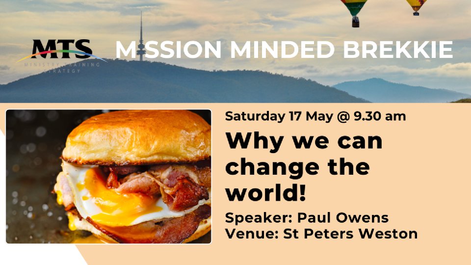 Come and consider how you can use you’re life in service of God’s kingdom, with particular opportunity to consider MTS apprenticeships. The next MTS Mission Minded event is a breakfast on “Why We Can Change the World,” Saturday, 17 May at 9:30 am at St Peter's Weston.