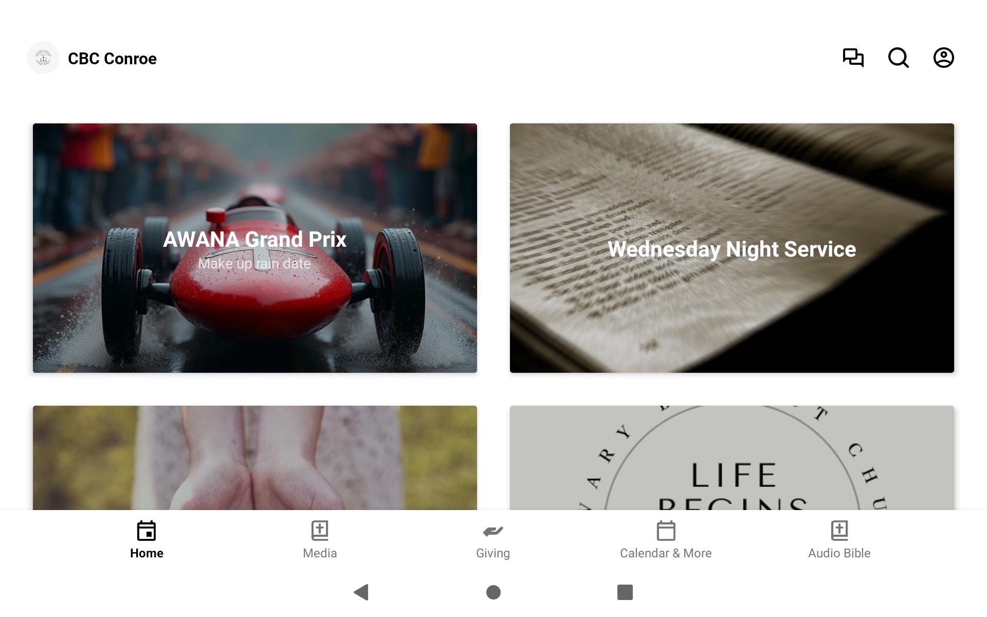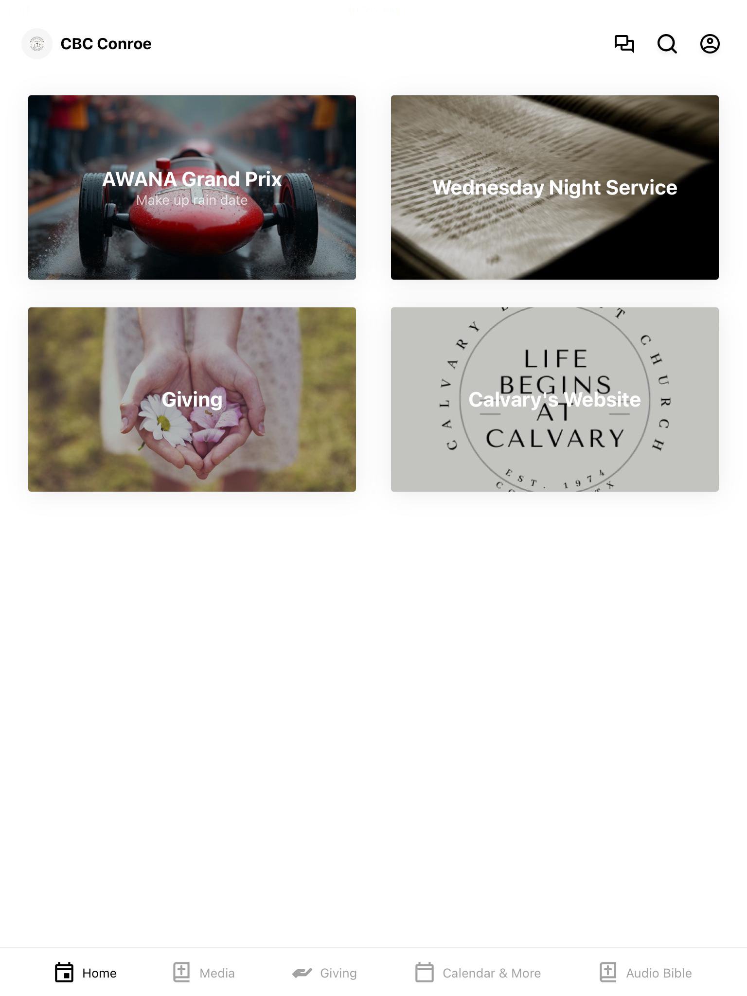 Welcome to the official Calvary Baptist Church "CBC" App What we offer: Live and recorded sermons, Events, Ministry Info, Bible App The CBC Church app gives you access to audio and video of our weekly messages, message notes, daily Bible reading, and info on upcoming events. We hope these resources will help you connect, grow, and take your next step. Calvary Baptist Church is located in Conroe, Texas. Campus service times/locations can be found at https://calvaryconroe.org. We also have live online services at https://calvaryconroe.org or on YouTube @ CBC of Conroe Texas Sunday @ 11am and 6pm Wednesday @ 7pm All services, live or on-demand, are available via the Calvary Baptist Church App. Visit our website, https://calvaryconroe.org, for more information. An Internet connection is required to view online content and media.