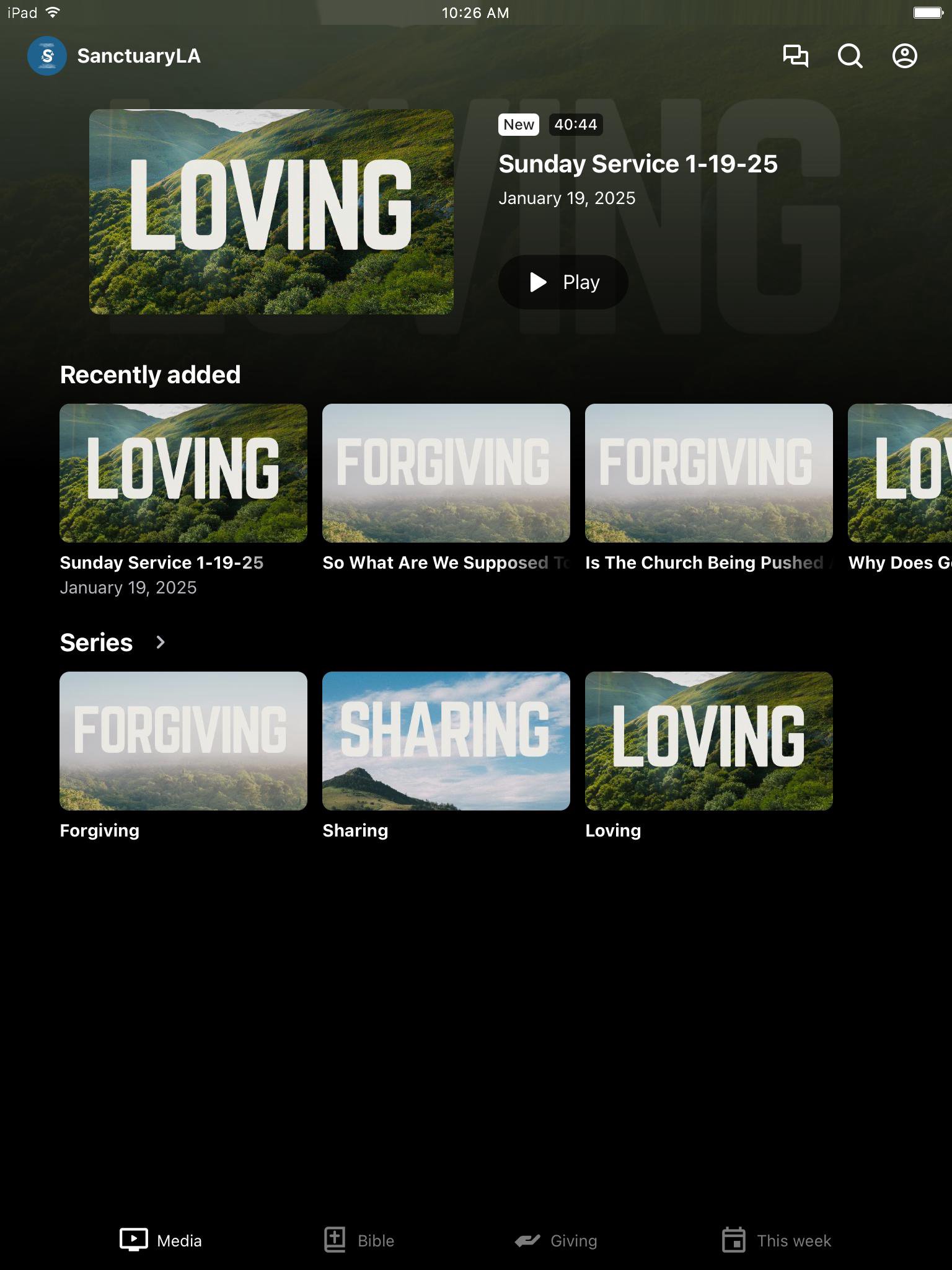 “And let them make Me a sanctuary, that I may dwell among them.” Exodus 25:8 At Sanctuary, we believe strongly in The Great Commission and the evangelical call to all believers to spread the good news of the Gospel. Pillars of Loving, Forgiving and Sharing. This app serves to empower our church family to sow into the ministry, to assist with executing the vision of Sanctuary. Providing resources to prayer, leading unbelievers to accept the gift of salvation, inviting people to our services, or by meeting a need. Join us regardless of where you are in your journey and we'll walk alongside you. - Development & Growth building bricks in the form of Audio Sermons - Daily Clips of sermon content to help you navigate life - Bible study for Women, Men, Youth, Seniors - Access resources, sermons, Bible - Study notes, teachings, takeaways - Listen to audio recordings, praise & worship - Search by events, communities, sermons - Share recordings, notes, events - Give tithes and offerings - Receive prayer, support, community engagement Join our community: Email: info@sanctuarylosangeles.org Website: https://sanctuarylosangeles.org Instagram: https://www.instagram.com/sanc.adifferentway Tik Tok: https://www.tiktok.com/@sanc.adifferentway